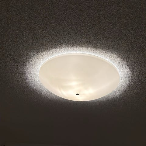 Myydään kuvanmukainen mustan / puun sävyinen kattovalaisin, halkaisija 42 cm. Pientä naarmuuntumista ja käytönjälkeä kuten kuvista näkyy, mutta edelleen hyvä ja siisti valaisin E27-kannalla.
