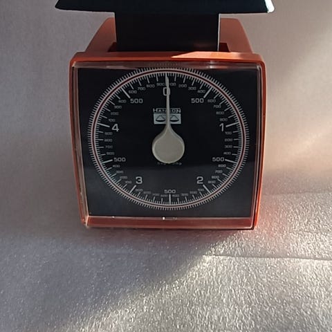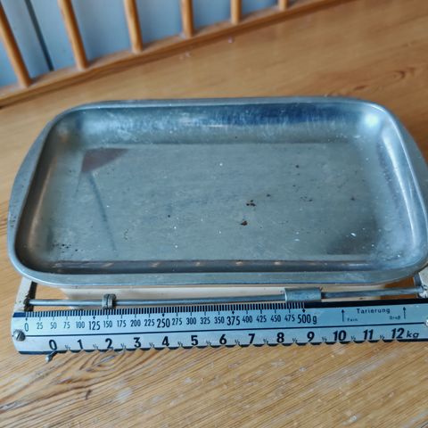 Vanha keittiövaaka. Kaunis punainen väritys. Ajan patinoima.