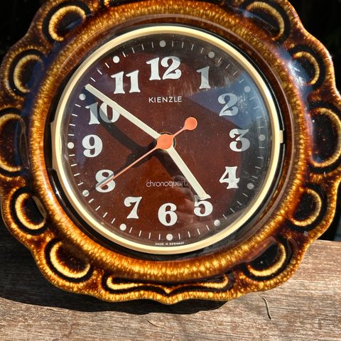 Toimiva keraaminen Kienzle Chronoquarz seinäkello 1970-luvun lopulta.