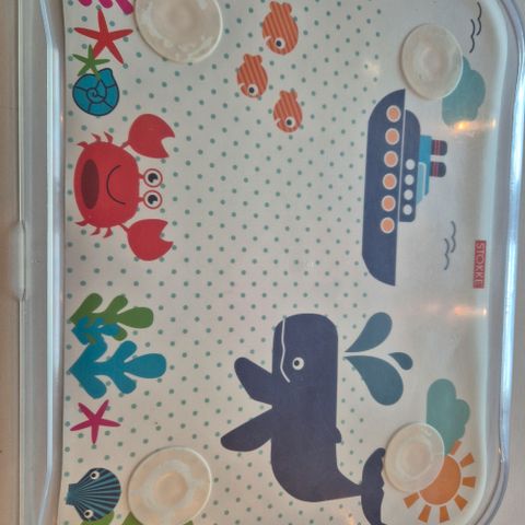 Pehmeä ja joustava silikonimateriaali on LFGB-testattu ja turvallinen lapsen terveydelle. Pyöristetyt kulmat lisäävät turvallisuutta. Liukumaton materiaali mahdollistaa monikäyttöisyyden, alusta pysyy tasaisena pöydällä ja astiat pysyvät vakaasti paikoillaan. Alusta sopii käytettäväksi joko syöttötuolin tarjottimella tai ruokapöydällä. Pehmeän silikonin ansiosta tarjotinalustan voi helposti rullata kokoon ja säilyttää kätevästi seuraavaa ateriaa varten.