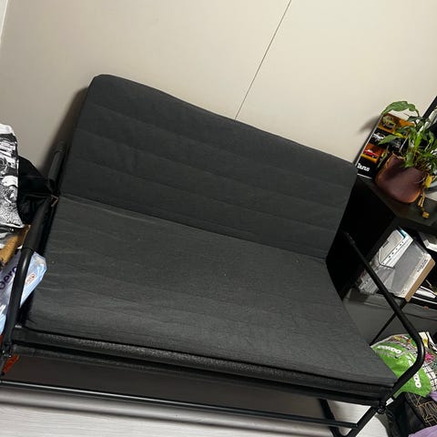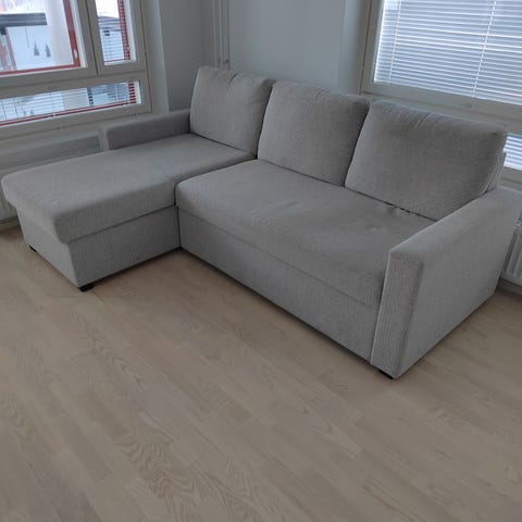 Yleisilme siisti. Muutama jälki etuosassa, katso kuvat. 2 patjaa mukaan tarvittaessa, Ikea Krummelur 30e/kpl. Nouto.