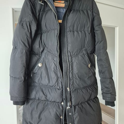 Parajumpers naisten untuvatakki koossa M, väriltään beige. Pitkä malli, jossa toppaus untuvaa. Takissa on irroitettava huppu, jossa karvareunus, sekä korkea kaulus. Edessä vetoketju ja painonapit, useita taskuja ja hihassa Parajumpers-merkki. Sopii naisten ulkoiluun ja arkipukeutumiseen viileällä ja kylmällä säällä.