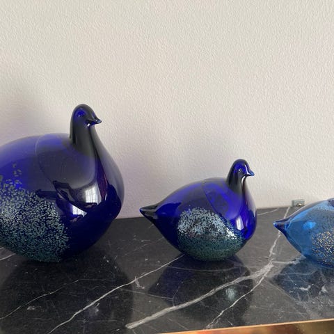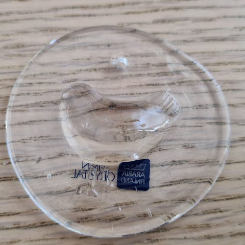Lasinen lintukoriste, jossa kirkasta ja vihreää lasia. Virheettömässä kunnossa