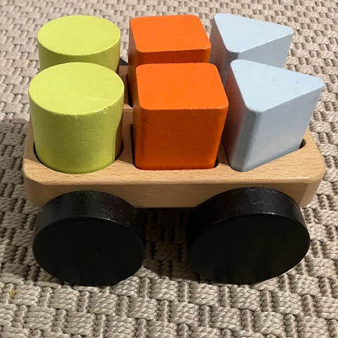 Vauvan puinen palikka lelu, pujoitus. Kunto hyvä, tukeva ja toimiva
