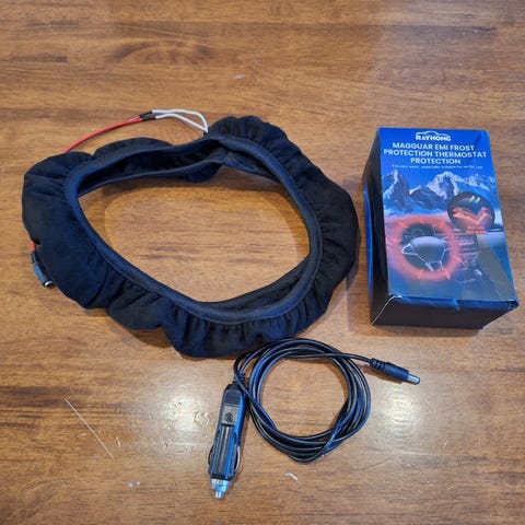 Tupakansytyttimeen kytkettävä ratinlämmitin. Vain kerran kokeiltu. Johto oli vähän epäkäytännöllinen omaan autoon, siksi myyn.