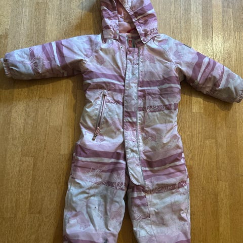 Myydään yhdellä lapsella käytössä ollut ehjä, mutta erityisesti pepusta ja polvista kulunut Reiman haalari. Pepun kohdalta haalari on pehmentynyt, sauma kulunut ja kangas haalistunut sekä tahraantunut (ei lähtenyt pesussa pois). Myös siellä täällä erityisesti saumakohdissa tahroja/kulumaa. Soveltuu kuitenkin oikein hyvin esim. rymykäyttöön tai varahaalaiksi, meillä päiväkodissakin vielä käytössä ollut. Haalarissa on irroitettava huppu. Jalkalenksut vielä ehjät. Kunto huomioitu hinnassa.