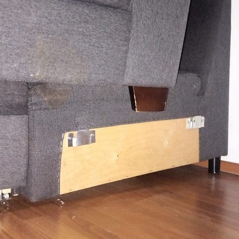 Kahden hengen vuodesohva. Väri ruskehtava. Nouto rantakylässä