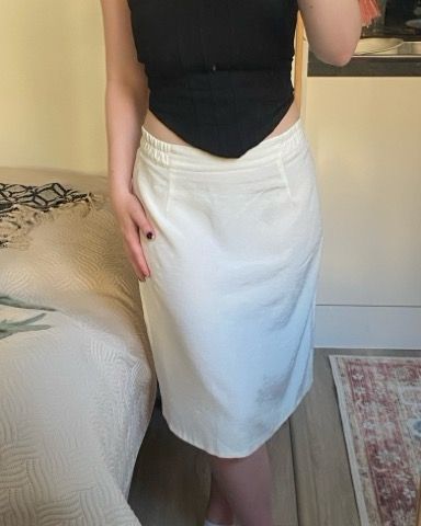 Myydään kaunis vaaleansininen vintagehame. Pituus n. 70cm, ei materiaalilappua, mutta kangas tuntuu kevyeltä ja viileältä, vuorikangas ehkä viskoosia. Kokolappu sanoo 46, vastaa noin kokoa S.