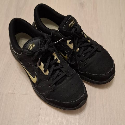 Muuten hyväkuntoiset, mutta toisessa kengässä n 1 cm:n viilto, joka ei ole läpi kengän.