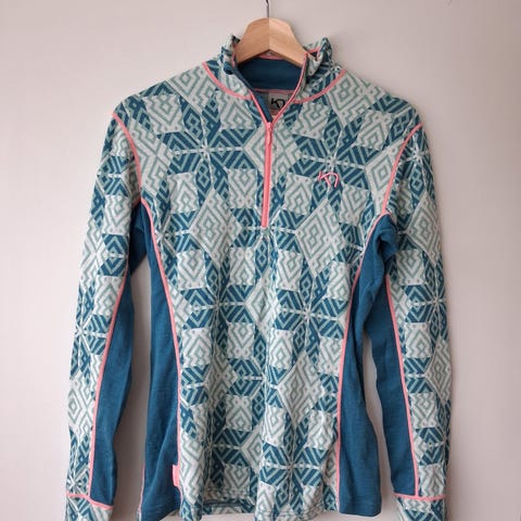 Kari Traa merinovilla naisten alusasu, paita koko M ja housut koko L. Kaksiosainen setti, jossa pitkähihainen napillinen paita ja pitkät housut. Väri harmaa kuviollisilla yksityiskohdilla. Materiaali merinovillaa, joka tuntuu pehmeältä ihoa vasten. Sopii käytettäväksi esimerkiksi aluskerrastona ulkoillessa ja talviurheilussa.