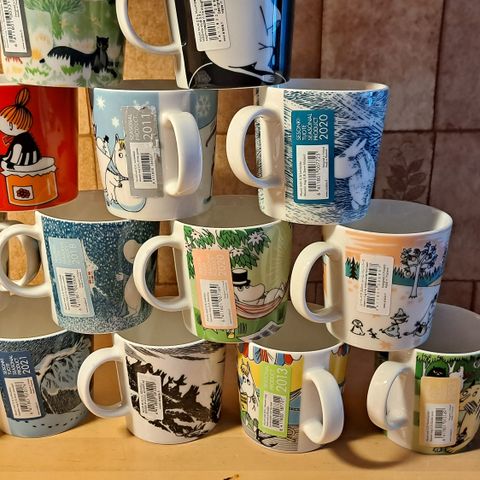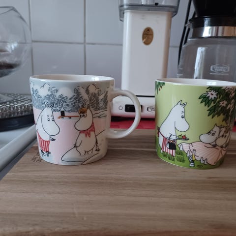 Täysin käyttämättömät muumimukit tarroilla. Myydään yhdessä tai erikseen.
