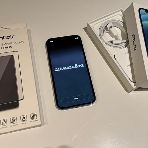 Myynnissä musta iPhone 12 mini, 64 GB.