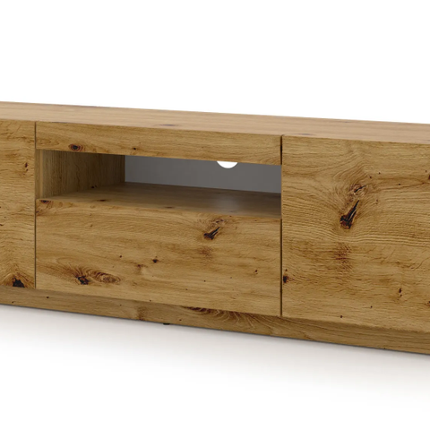 Upea ovaalinmuotoinen Nola-tv-taso tarjoaa tyylikkään ja toiminnallisen ratkaisun sisustukseen. Tammipaneelin, mustan metallin ja pyöristettyjen kulmien yhdistelmä luo tasapainoisen ja mielenkiintoisen ilmeen. Lisäksi tilaa säästävät liukuovet tarjoavat käytännöllisyyttä ja joustavuutta säilytysratkaisun käyttöön