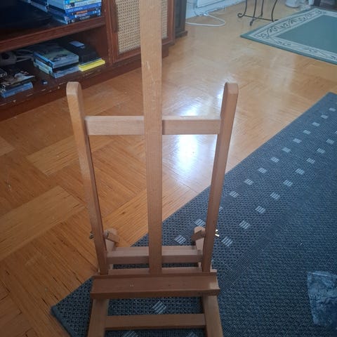 Puinen pöytämaalausteline.