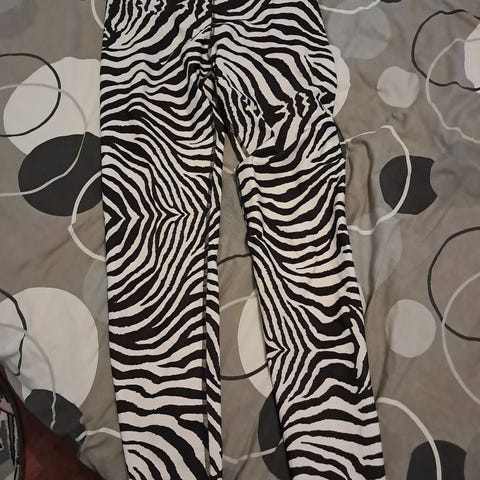 Liljan urheiluleggingsit naisille, koko XL. Sävyinä luumu ja vaaleampi luumu, eläinkuviota muistuttava kuosi. Joustava ja istuva malli, ei taskuja. Käytetyt, mutta ehjät.