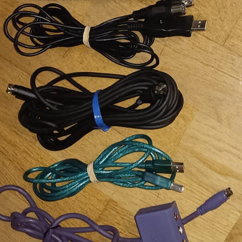 9 kpl 3 m TRS-TRS. Jääneet synasetistä ylimääräiseksi, olleet kiinteästi syntikoiden ja äänikortin välissä kytkyssä.