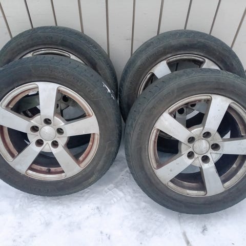 2015 paistoleima. Ihan ajokuntoiset ja hyvät nastat vielä jatkokäyttöön. Pulttijako 5x110. Ollut C Vectran alla.