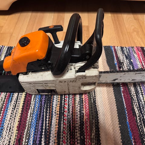 Hyväkuntoinen ja kohtuusiisti luja saha.