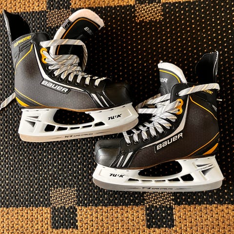 Bauer jääkiekkoluistimet, koko 42. (Bauer koko 7). Soveltuvat jääkiekkokäyttöön ja yleiseen luisteluun. Luistimet ostettu uutena 2v sitten, olleet yhdellä pojalla kaksi talvea. Säilytetty lämpimässä tilassa.