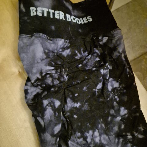 Better Bodies naisten bikershortsit. Koko M. Väri harmaa. Joustava, vartalonmyötäinen materiaali, jossa ribbineulosta vyötäröllä ja lahkeissa, todella korkea vyötärö. Kuvissa näkyy yhden paikan korjausompeleet, sisäreidessä.