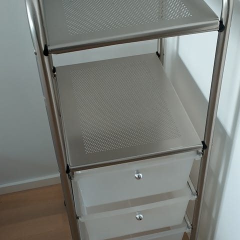 Yöpöydän kannessa käytön jälkiä, muuten ehjä ja toimii moitteettomasti!