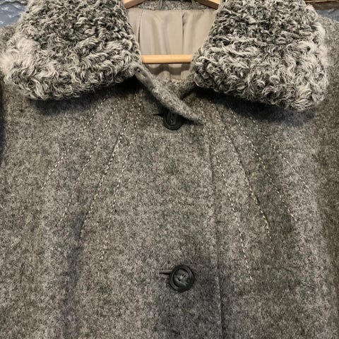 Ihana klassikko vintage musta takki, jossa on turkisvuorattu kaulus. Merkki Skorma. Mukava paksu ja lämmin kangas, 100% puhdasta uutta villaa. Kainalo-kainalo 49cm, pituus 110cm.