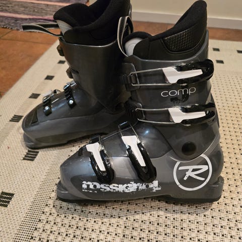 Rossignol Comp9j 120cm laskettelusukset ja Salomon laskettelumonot, koko 24.5 (EU 39, UK 5.5, US 6).