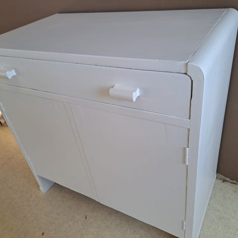 Puinen vanha rulokaappi. Vintage, kaunis ja kiva. Käytön jälkiä ja sisusta vähän repsottaa, ei kuitenkaan mitään, mitä pienellä fiksillä ei saisi siistiksi. Mukaan tulee yksi avain, joka käy kumpaankin oveen ja yhteensä kahdeksan hyllyä, joista kaksi lasia. Painaa kuin synti :)