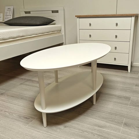 Ruotsissa valmistettu laadukas kantikas sohvapöytä. Sohvapöydässä on alhaalla laskutaso esimerkiksi lehdille tai kaukosäätimelle.