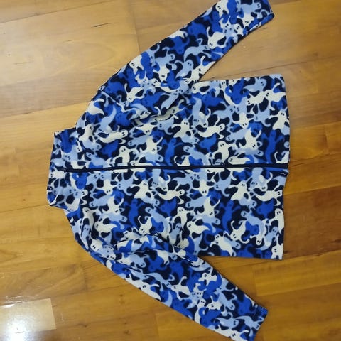 Heppakuvioinen Peuhu fleecetakki. Käytetty n. 1 talvi satunnaisesti välitakkina pakkasilla. Hyvä kuntoinen. Koiratalous.