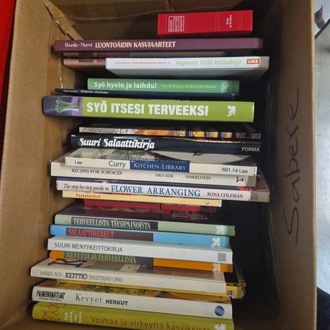 10 kpl erilaisia ruoka-aiheisia kirjoja.