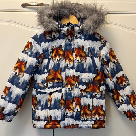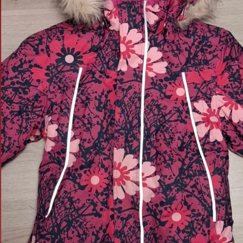 Jonathanin nätti kukkakuviollinen hiukan pidemmän mallinen toppatakki, koko 134.
