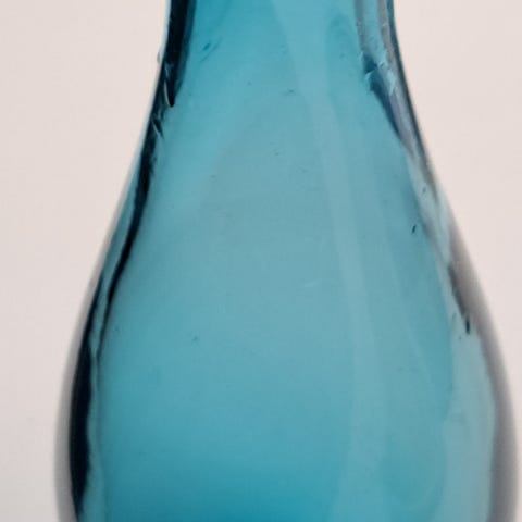 Turkoosi, pyörittäen puhallettu, signeerattu Riihimäen lasin Nimipäivä-maljakko.