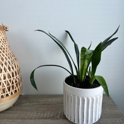 Anopinkieli huonekasvi vihreä. Pitkälehtinen viherkasvi, jossa pystyjä, kapeita ja kirjavia vihreän sävyisiä lehtiä. Sopii sisätiloihin huonekasviksi ja viihtyy valoisassa tai puolivaloisassa paikassa. Kasvi on istutettu ruukkuun, joka sisältyy tuotteeseen kuvan mukaisesti.