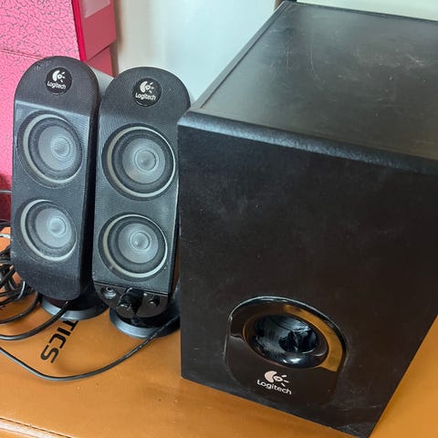 Hyvä 2.1 kaiutinjärjestelmä tietokoneelle tai puhelimeen. Teho ja bassonsäätö.