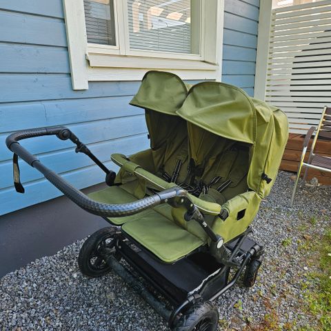 Ora tuplarattaat kahdelle lapselle. Rattaissa on viisipistevaljaat molemmille istuimille, erikseen säädettävät selkänojat ja jalkatuet sekä kuomut. Kiinteät renkaat ja alla tavarakori. Värinä on vihreä kangas mustalla rungolla. Soveltuu kahden lapsen kuljettamiseen vierekkäin istuen tai yksi lapsi istuen ja vauva maaten.