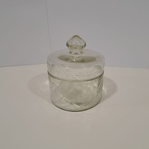 Kukkakuvioinen lasipurkki korkkikannella