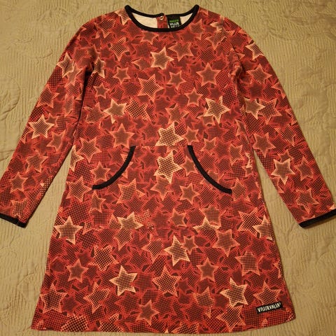 Ihana mekko yksisarvisilla, sateenkaarilla ja namuilla. Hyvässä kunnossa. Nepparit takana. Koko 128.