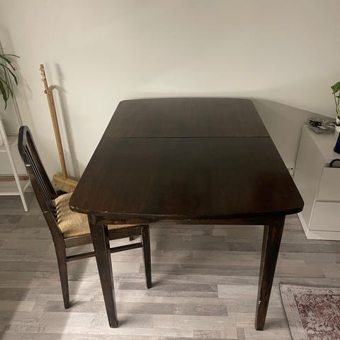 Annetaan Jyskistä ostettu ruokapöytä, halkaisija 100cm. Pöydässä kolhuja, kuvat ohessa. Vain nouto Muotialasta.