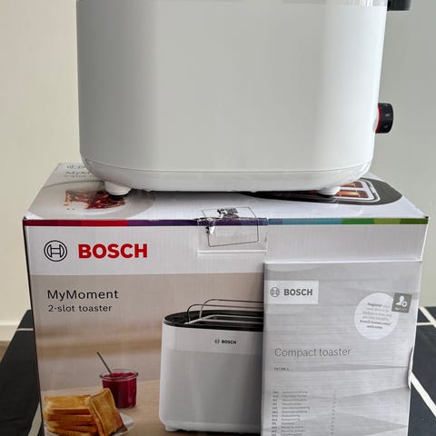 Myydään Bosch MyMoment leivänpaahdin. Tahra, joka ei lähtenyt pyyhkäisemällä, katso kuva. Muuten hyvässä kunnossa.