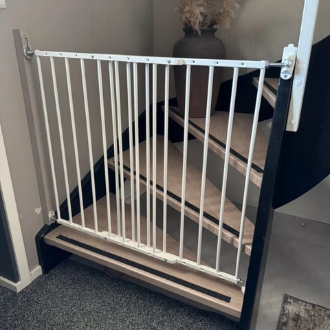 Myydään puinen Jollyroomilta ostettu Babydan merkin turvaportti. Turvaportin leveyttä saa säädettyä välillä 62,5–102 cm ja se aukeaa molempiin suuntiin. Käytetty ilman ylempää lukitusta (katso kuva). Ylemmän kiinnitysosan vieteri irronnut ja hävinnyt. Seinäosan pystyy kyllä asentamaan ja portin laittamaan kiinni, mutta vieteri on toiminut lukituksena. Tästä huolimatta portti ollut hyvä lapsiperheen portaikon yläpäässä 👍🏻 huomioitu hinnassa.
