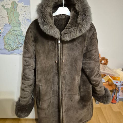Aito nahkainen ja aito turki talvitakki. Koko 36