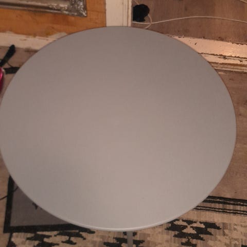 Myydään tarpeettomaksi jäänyt pyöreä metallinen sohvapöytä.