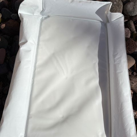 Myydään hyväkuntoinen pehmustettu hoitoalusta, jonka voi laittaa pinnasängyn päälle. Alustassa on kova pohja ja siinä on matalat jalat, joiden avulla alusta pysyy paikallaan. Huom. yksi jalka on irronnut. Ollut käytössä noin vuoden ja meillä on ollut aina pyyhe alustan päällä. Yhdestä kulmasta päällinen irronnut. Katso kuvat.