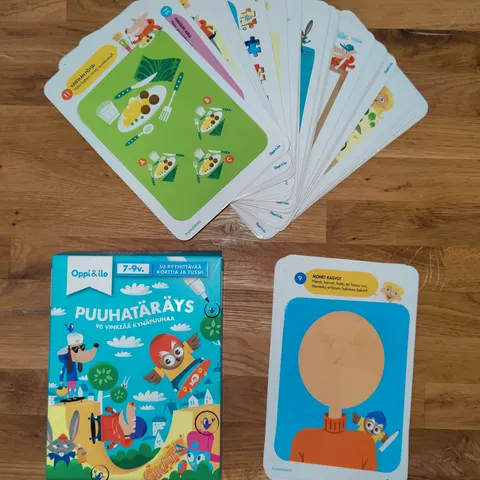 Myydään Oppi&ilo-merkin 7-9-vuotiaille suunnatut Puuhatäräys-kortit. Pakkaan kuuluu 50 pyyhittävää korttia. Hintapyyntö on viisi euroa ja lähetän tarvittaessa postikuluja vastaan.