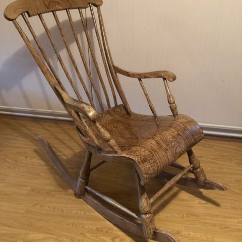 Hyväkuntoinen valkoinen keinutuoli