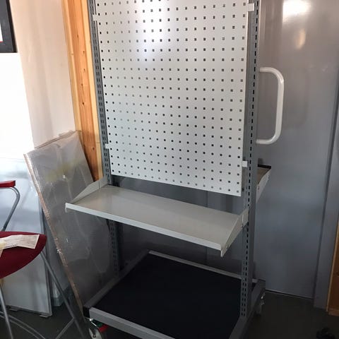 Ulkona käytössä ollut tarjoiluvaunu pyörillä. Nouto Lystimäki