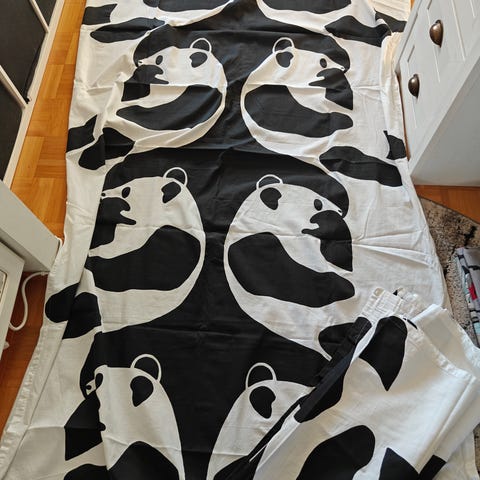 - Pituus 250 cm ja leveys 140 cm (valitettavasti ei ole paikkaa mihin saisin ne kokonaisuudessaan roikkumaan kuvaa varten)