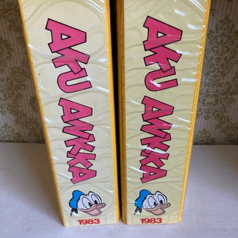 Aku Ankka - lehden vuosikerta 1982 kahdessa kansiossa. Kansion kannet kupruilevat. Vain nouto Espoon Iivisniemestä. Maksu käteisellä tai MobilePayllä.