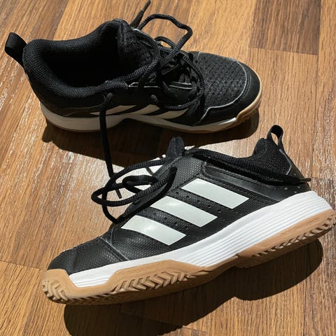Adidas lasten sisäpelikengät, unisex-malli, kengänkoko 33. Väri valkoinen. Nauhakiinnitys.